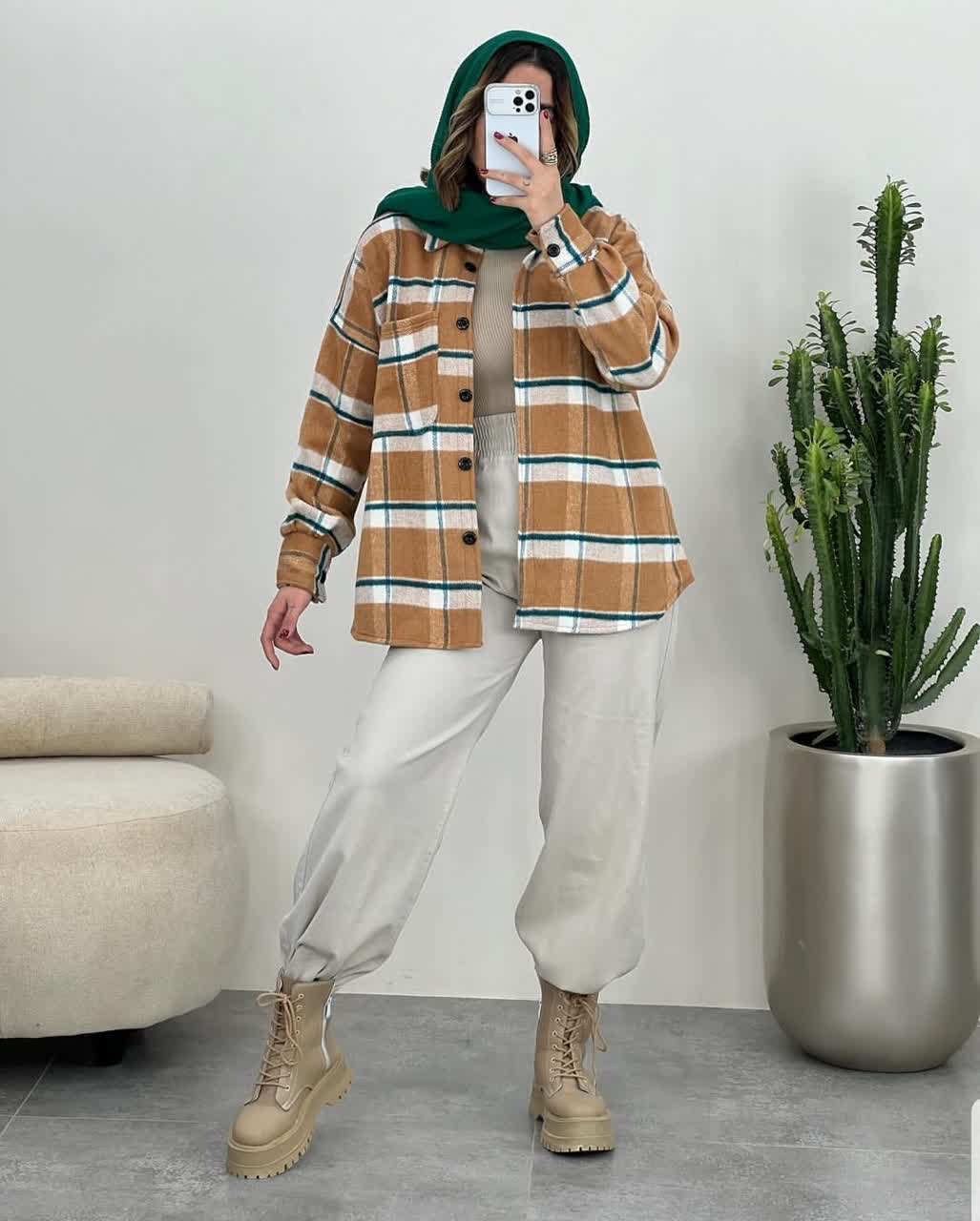 استایل پاییزی شکت قهوه ای چهارخونه